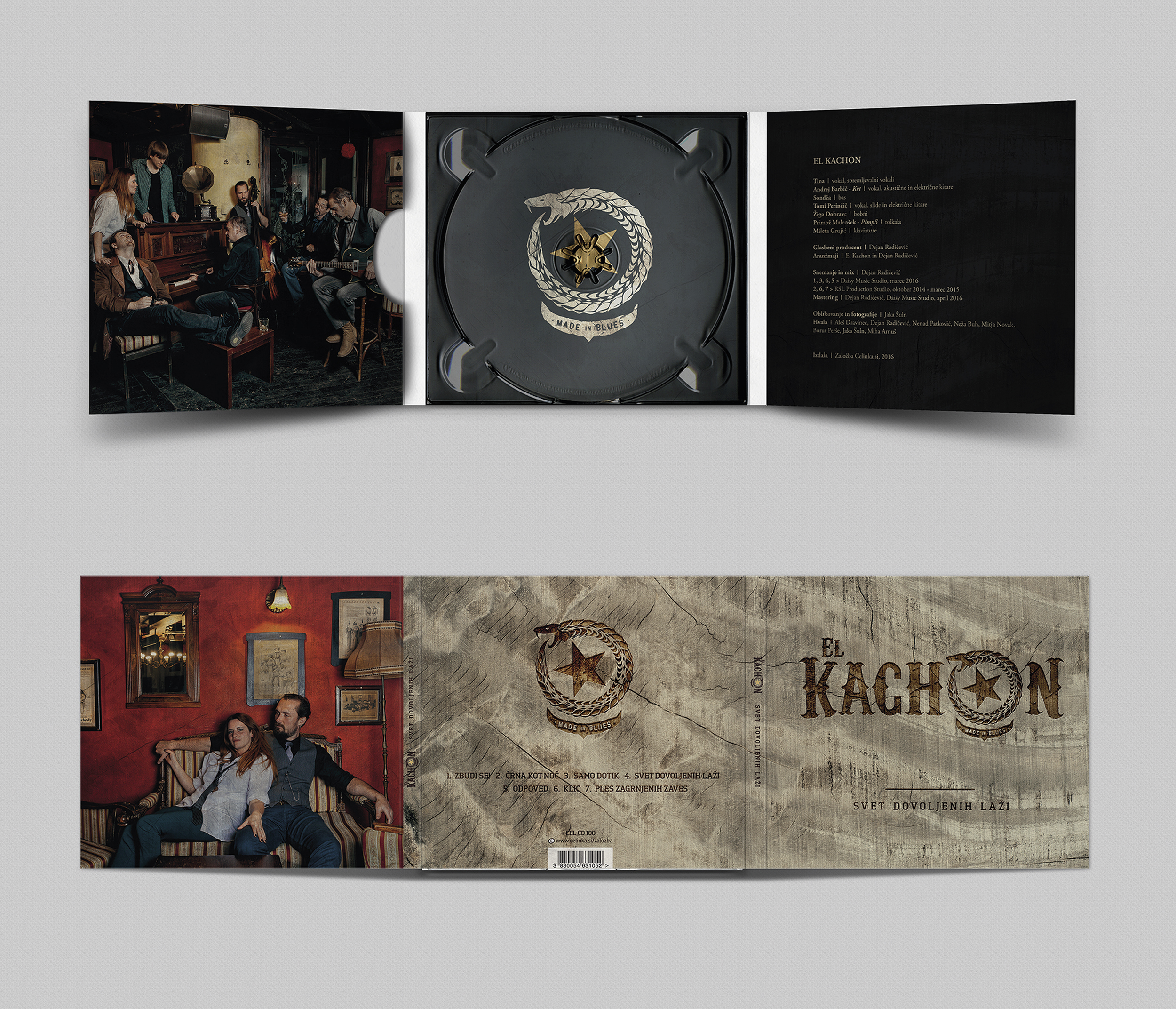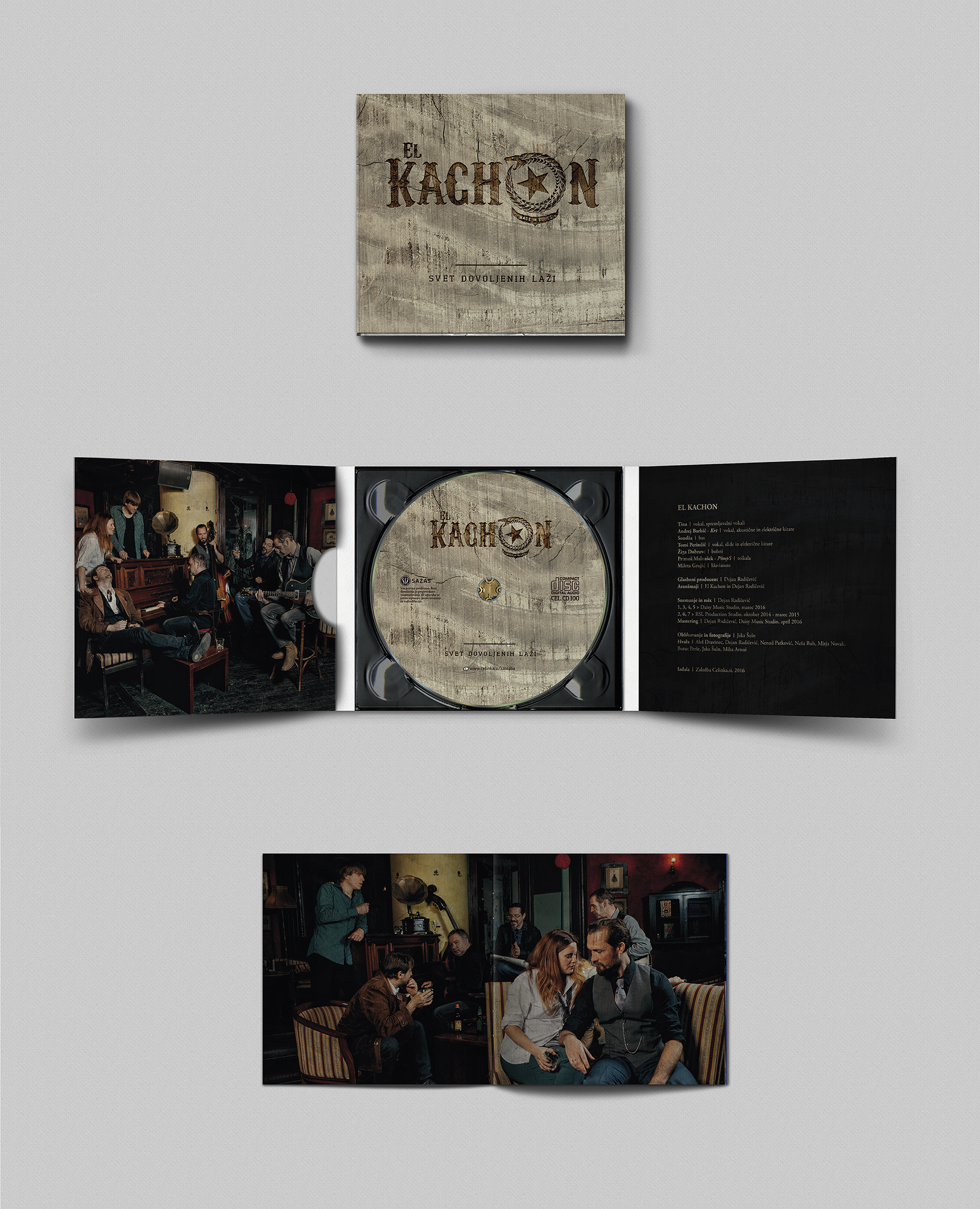 Second CD album design for the group El Kachon – Svet dovoljenih laži. 6 sided eco digipak + booklet. Design & photography Jaka Šuln.